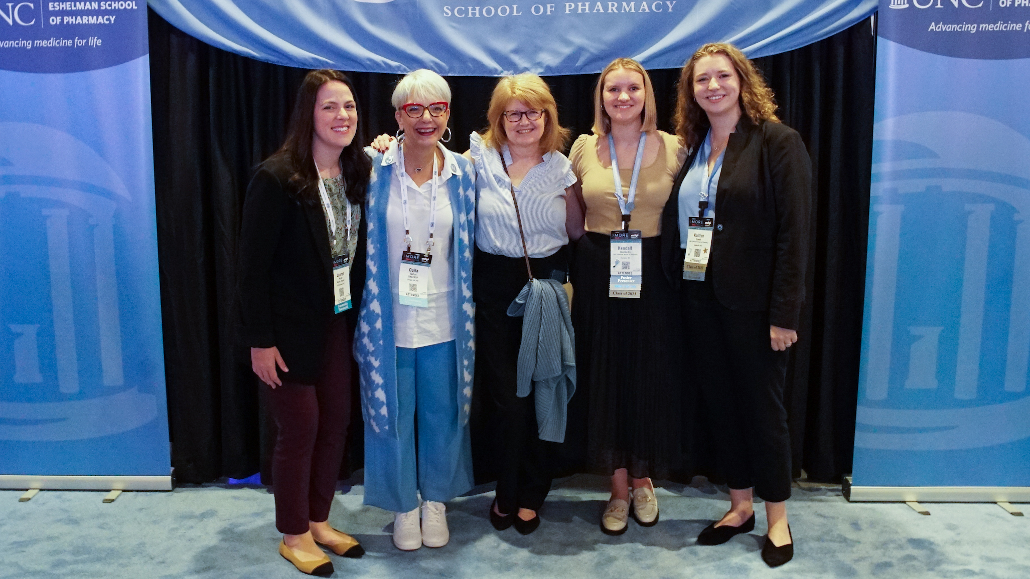 The ASHP Midyear Clinical Meeting & Exhibition 2022 took place December 4th – 8th in Las Vegas. The UNC Eshelman School of Pharmacy was well-represented at the conference. We had 15 faculty present at the meeting, as well as a record 47 student poster presentations. Our alumna, Toyin Tofade, PharmD ’97, received the ASHP Board of Directors’ Donald E. Francke Medal, and our Regional Associate Dean for Asheville, Mollie Scott, received a Pharmacy Practice Sections and Forums Distinguished Service Award. On Monday morning, Dr. Stephen Eckel welcomed our MS Program alumni for a breakfast gathering and on Monday evening we hosted a reception at the House of Blues where we welcomed nearly 300 students, alumni, and faculty to celebrate a successful 2022 and our 125th anniversary.