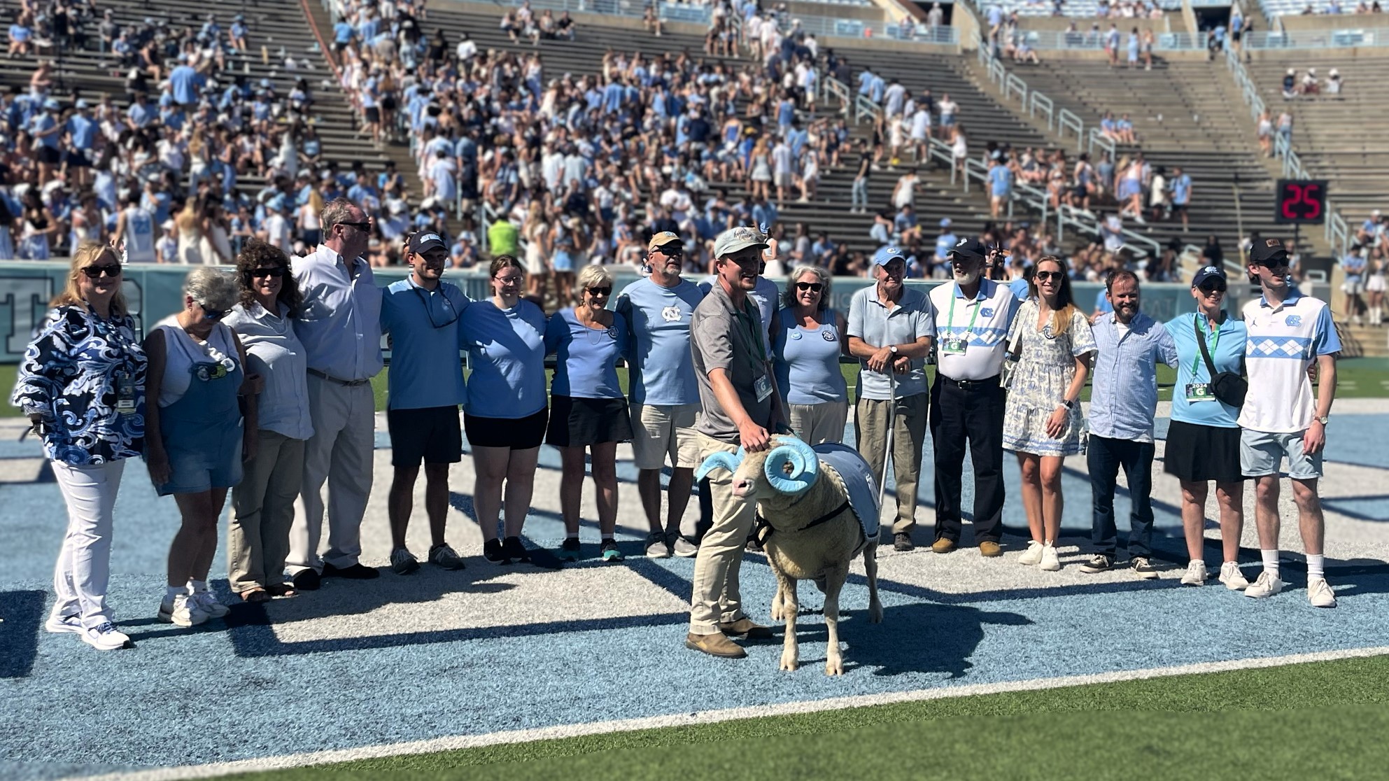 Finally, at the UNC Homecoming game vs. Pitt, Dean Kashuba took the field at halftime to celebrate Rameses’ 100th! The School is sponsoring a special Ram Pen at the Bell Tower for each UNC home football game this year as part of the celebration.